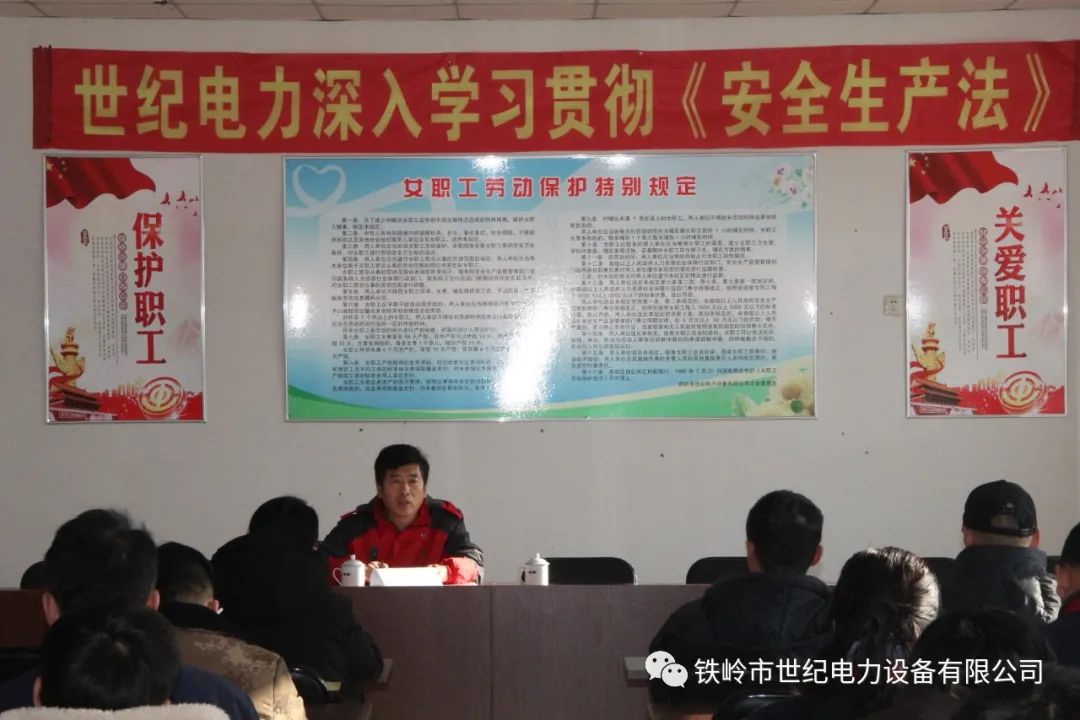 12月25日下午,為深入學(xué)習(xí)貫徹2021年新頒布的《安全生產(chǎn)法》,全面推進安全生產(chǎn)法制建設(shè),廣泛營造安全生產(chǎn)社會氛圍,鐵嶺市世紀電力設(shè)備有限公司組織開展“安全生產(chǎn)法”學(xué)習(xí)活動,會議由副總經(jīng)理王曉利主持,副總經(jīng)理張洪新出席并作安全生產(chǎn)專題宣講,公司全體職工參加會議。